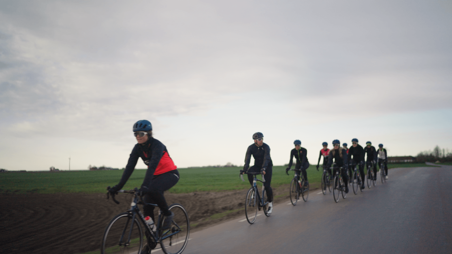 Emil Jönsson Haag, Julia Andrén och tjejerna i kompisgänget nöter på med cyklingen. En av de stora utmaningarna gruppen har är att ta hjälp av varandra i klungan och att våga ligga nära. Tillsammans med Emil blir det en lektion i just detta.